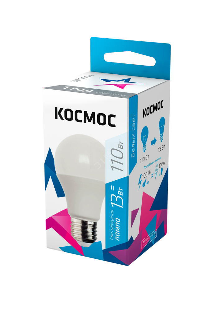 Полное описание товара Лампа светодиодная LED 13Вт 220В Е27 D60х108 4500 белый А60 (Космос)