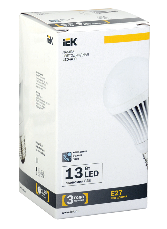 Полное описание товара Лампа светодиодная LED 13вт E27 белый (IEK) LL-A60-13-230-40-E27