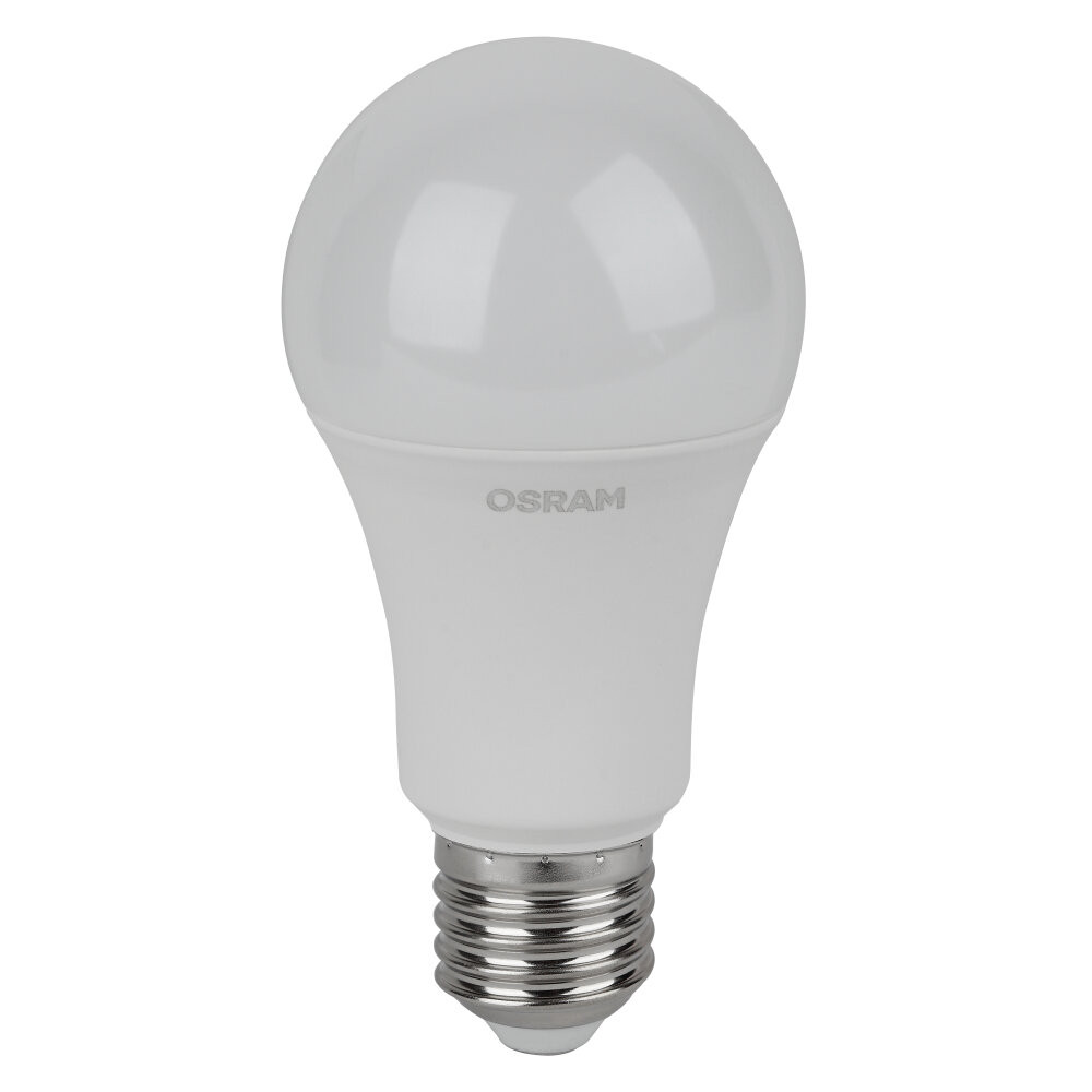Лампа светодиодная OSRAM LED Value A, 1200лм, 13Вт (замена 125Вт), 4000К (нейтральный белый свет). Цоколь E27, колба A. Исполнение колбы матовое, пластик. Напряжение питания 220-240В. Особенности: паковка по 5шт.