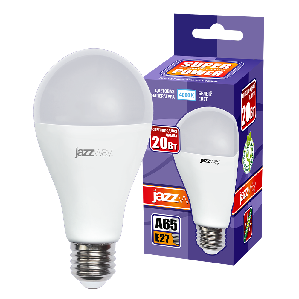 Полное описание товара Лампа светодиодная LED 20w E27 4000K груша 230/50 (JazzWay) 5019669A