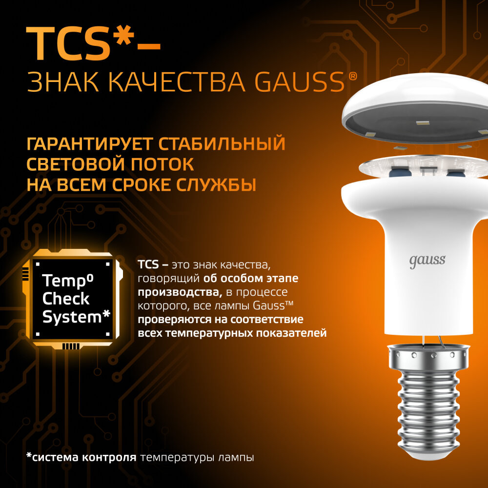 Отличная замена ламп накаливания и компактных люминесцентных ламп форм R39, R50, R63. Благодаря направленному световому пучку эти лампы помогают создать красивое, акцентное освещение. Спектр применения зеркальных ламп Gauss Black весьма широк: они прекрасно подойдут для любых типов потолков, для светильников направленного света и точечной подсветки.