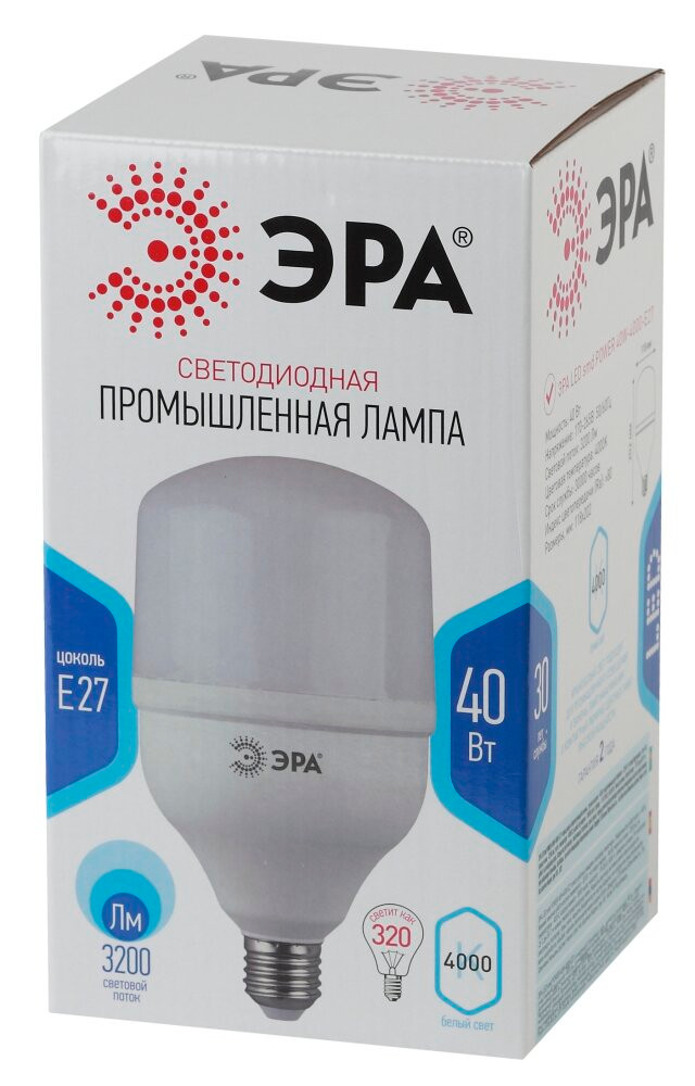 Лампа светодиодная ЭРА Серии Стандарт для освещения производственных, торговых и подсобных помещений. Отличается высокой мощностью, грамотно продуманной системой охлаждения и широким выбором цветовых температур.