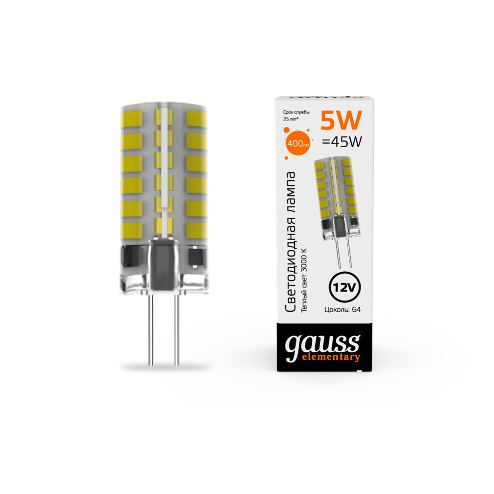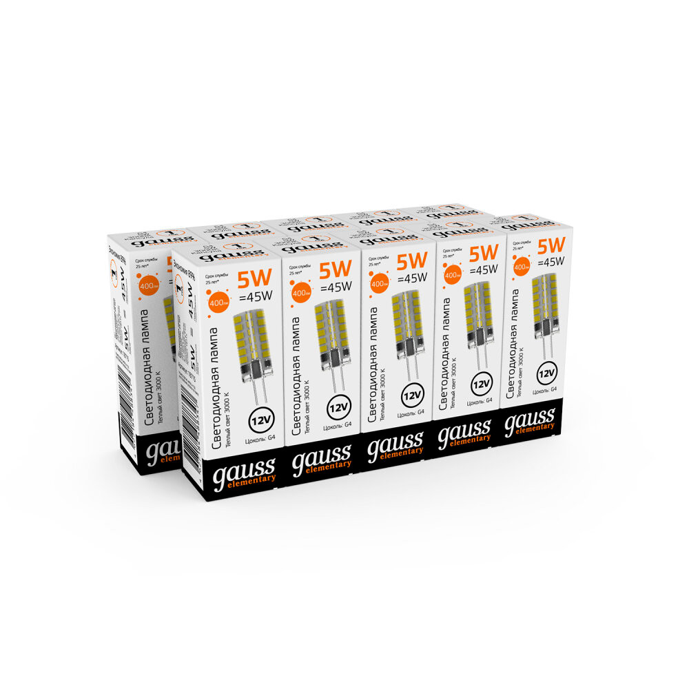Полное описание товара Лампа светодиодная LED 5 Вт 400 лм 3000К капсула теплый G4 AC/DC 12В силиконовая низковольтная Elementary Gauss (GAUSS) 18715