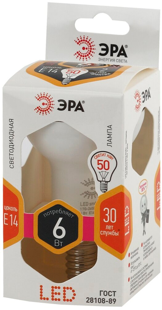 Бытовая светодиодная лампа ЭРА Серии Стандарт, создаёт яркое ровное освещение и экономит до 90% электроэнергии по сравнению с лампой накаливания с аналогичным световым потоком. Светит теплым светом с жёлтым оттенком - такая цветовая температура эффективна для отдыха и уютной атмосферы в доме. Используется в потолочных, настенных, настольных светильниках, в люстрах и бра. Мгновенно включается и не нагревается.