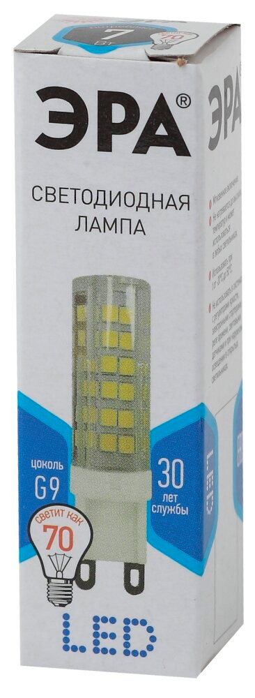 Полное описание товара Лампа светодиодная LED 7 Вт 560Лм 4000К капсула нейтральный G9 170-265В LED JCD-7W-CER-840-G9 Standart (ЭРА) Б0027866
