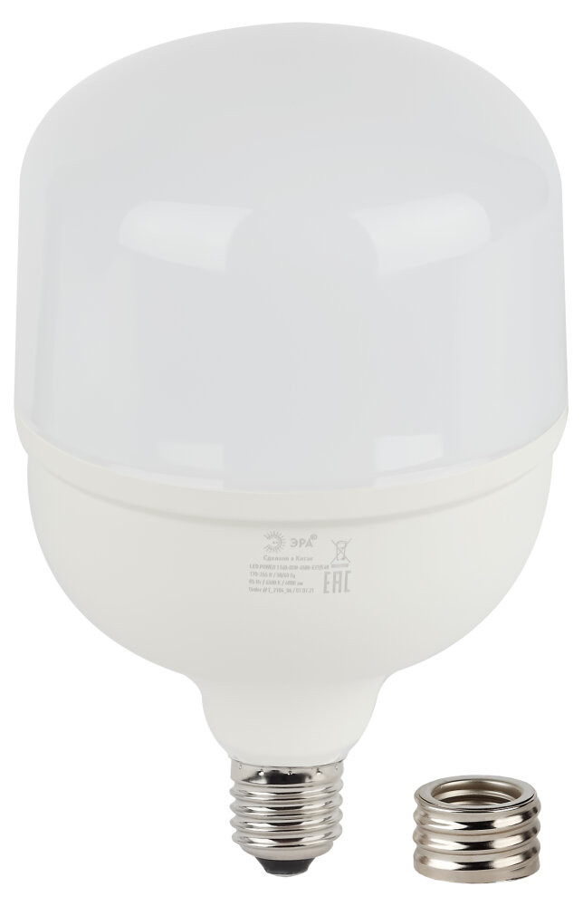 Полное описание товара Лампа светодиодная LED 85 Вт 6800Лм 6500К T140 холодный E27/E40 (переходник) 170-265В LED POWER T140-85W-6500-E27/E40 (ЭРА) Б0032088