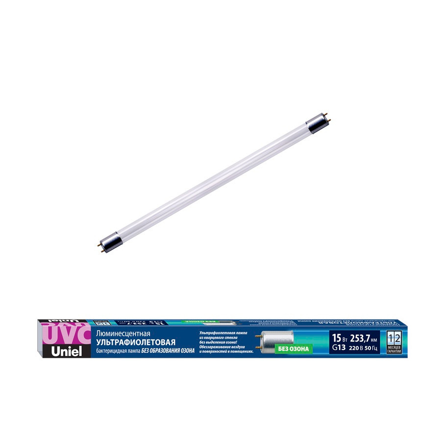 Лампа ультрафиолетовая бактерицидная. EFL-T8-15/UVCB/G13/CL Спектр UVC 253,7нм. Картон. ТМ (Uniel) UL-00007275