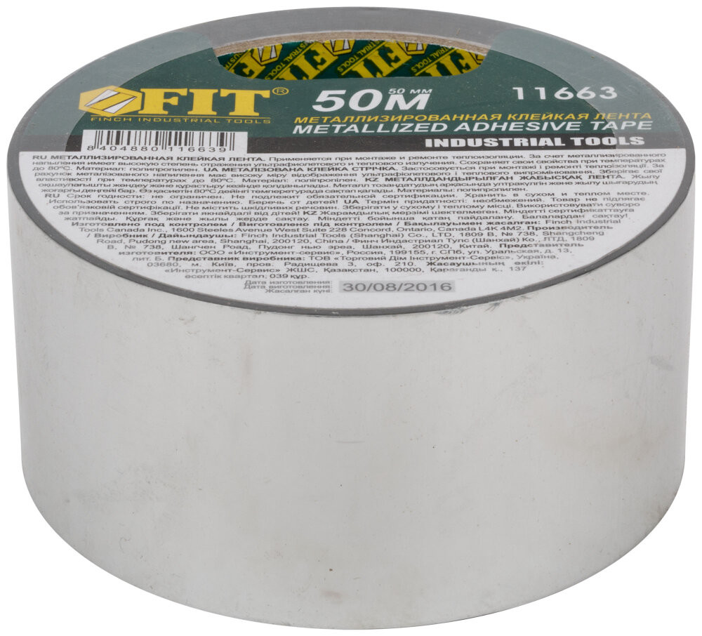 Металлизированная клейкая лента FIT IT используется при монтаже теплоизоляционных материалов, укладке инфракрасных теплых полов. Имеет высокую степень отражения ультрафиолетового и теплового излучения. Обеспечивает высокое качество склеивания даже неровных поверхностей. Клеевой слой с высокой степенью адгезии обеспечивает легкий монтаж ленты.
