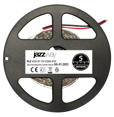 Полное описание товара Лента светодиодная 7.2Вт/м 12В 6500К холодный белый IP20 30 LED/м 5м (JazzWay) 327545