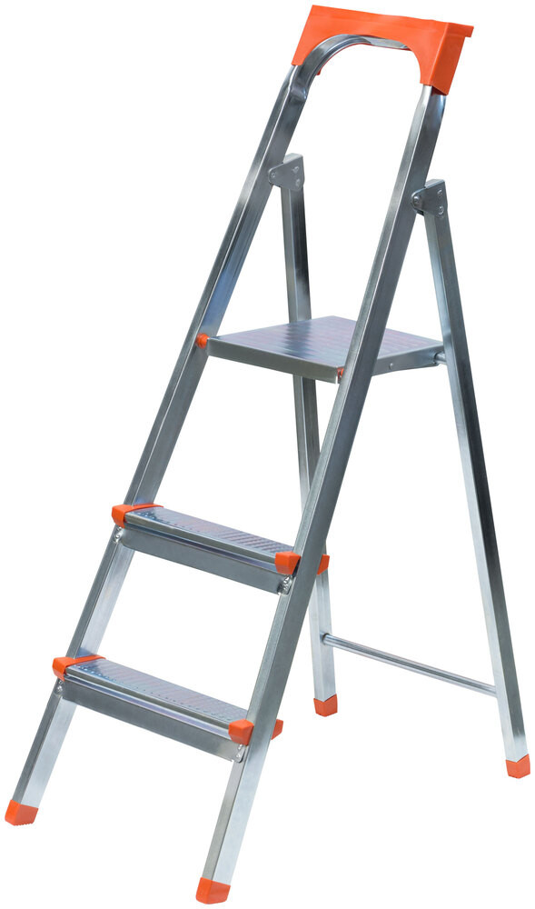 - Преимущества: Стальная рама с прямоугольным сечением обладает высокой прочностью|Пластиковые накладки на ножках предотвращают повреждения напольных покрытий|Ступени и площадка имеют противоскользящий рифленый профиль|Широкие ступени, усиленный сварной шов и высокая дуга обеспечивают безопасность работы|Не занимает много места в сложенном состоянии