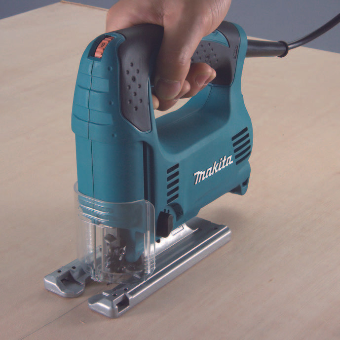 Полное описание товара Лобзик,в\рук,450Вт,500-3100об\м,ход-18мм,рез-65мм,1.9кг,кор,маятн,Al подошва (Makita) 4329