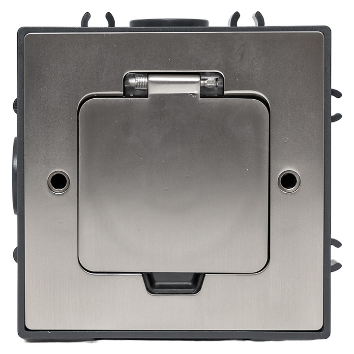 Лючок напольный C-Line 2 (с напольной коробкой) EKF. Предназначен для монтажа в бетонный пол. Емкость лючка – 2 модуля ЭУИ. Обладает повышенной ударопрочностью IK09 и степенью защиты от влаги и пыли IP44. Возможность блочного монтажа, лючки соединяются между собой с помощью специальных пазов. Лючок – это изделие прямоугольной формы, для компактного размещения электроустановочных изделий. В лючки C-line 12, C-line 8 и C-line 2 устанавливаются только модульные электроустановочные изделия. Лючки и комплектующие к ним представляют собой напольную систему C–Line EKF, включающую в себя лючок напольный, коробку напольную, приборную рамку и ниверлирующий комплект (в зависимости от конкретной ситуации список комплектующих может изменяться). Все изделия приобретаются отдельно.