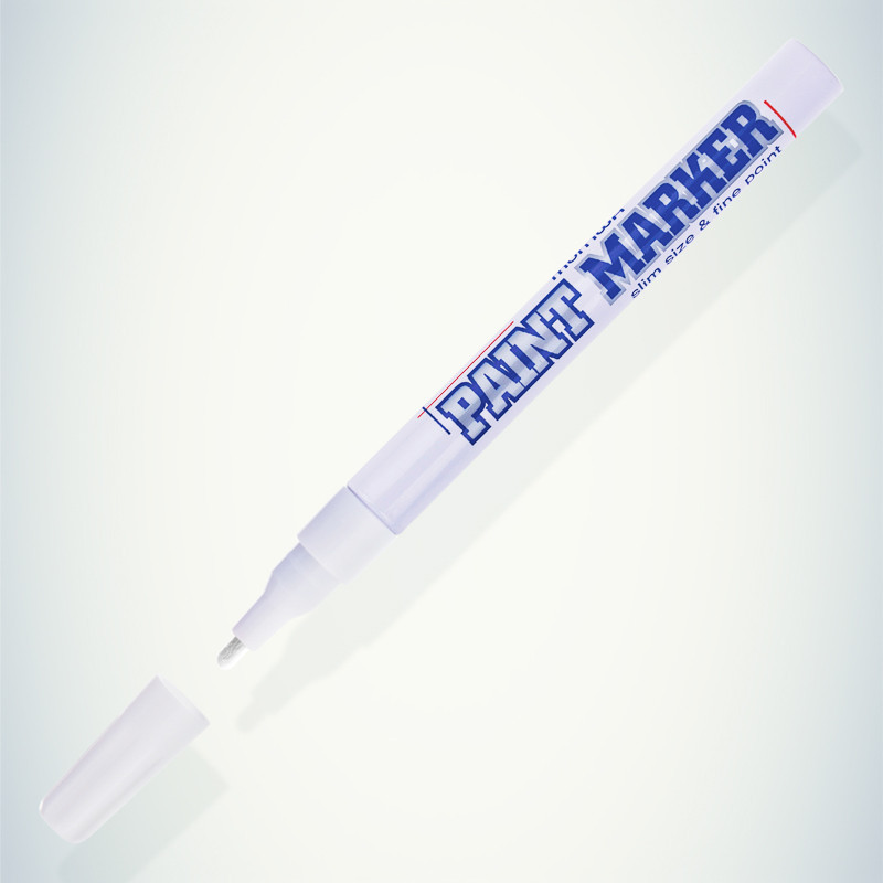 Водостойкий маркер-краска MunHwa 'Slim ' лаковый на нитро-основе. Используется для маркировки изделий из пластика, дерева, металла, камня, кирпича, стекла, резины, кожи. Применяется при реставрации, декорировании, ремонте и строительстве. Чернила поступают дозированно, ровно ложатся на поверхность. Перед использованием необходимо встряхнуть маркер и в вертикальном положении надавить стержнем на поверхность, дать краске пропитать пишущий узел. Игольчатая форма наконечника не оставляет царапин при письме. Чернила высыхают на поверхности в течение 40-60 секунд. Корпус выполнен из прочного алюминия.