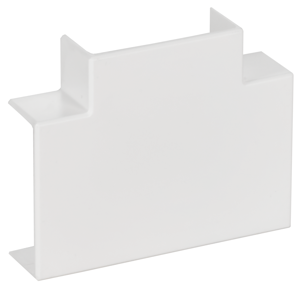 Угол Т-образный позволяет выполнить Т-образное соединение двух кабель-каналов, обеспечивает степень защиты всей системы IP40, улучшает внешний вид, закрывая место разреза. Т-образный угол закрепляется на корпусе кабель-канала простым защелкиванием. Цвет: белый.