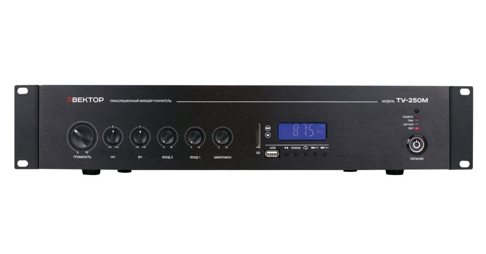Микшер-усилитель комбинированный компактный, мощность 250 Вт, цифровой FM тюнер, MP3 плеер, USB, SD, Bluetooth, питание 220 В, рэковое крепление (ВЕКТОР) ТУ-250М