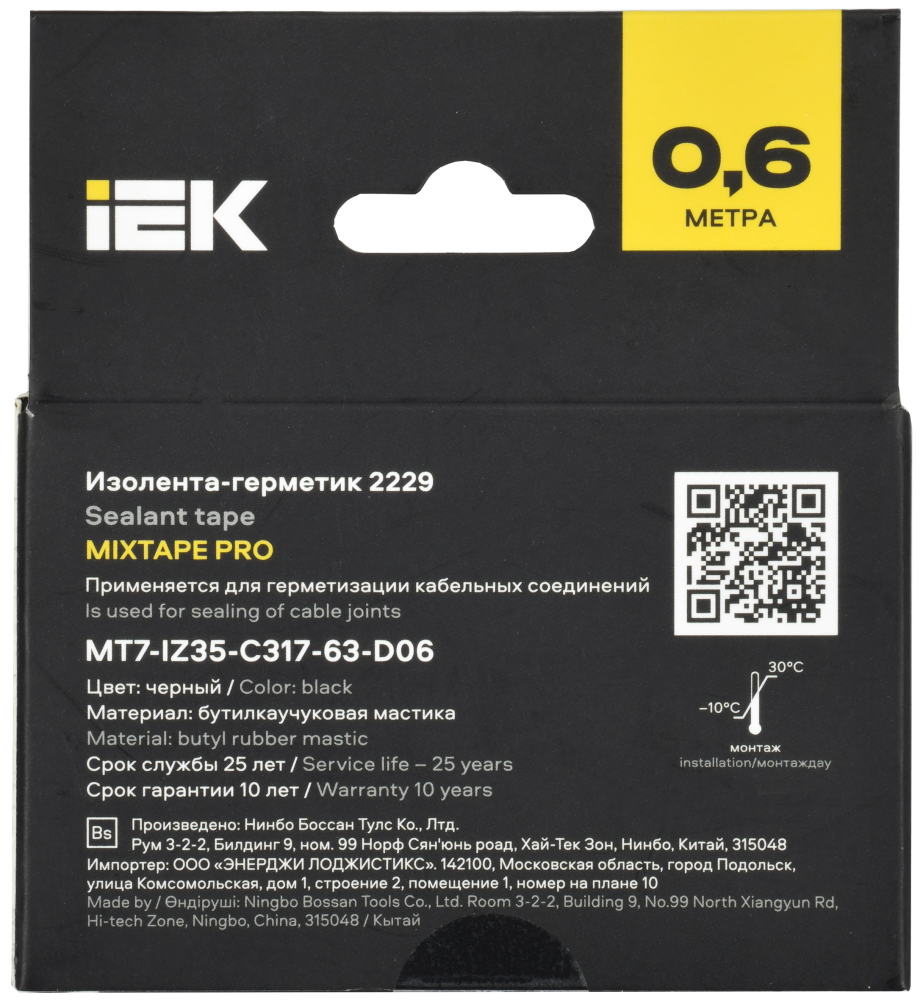 Изолента-герметик IEK MIXTAPE PRO изготовлена из бутилкаучуковой мастики. Применяется для быстрой и легкой герметизации кабельных соединений, которые необходимо защитить от неблагоприятных условий окружающей среды. Подходит для защиты от коррозии и устойчива к УФ-излучению. Применение в строительстве: использование в строительных работах для герметизации различных конструкций.
