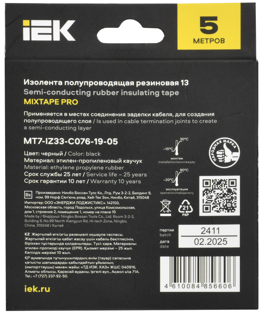 Полное описание товара MIXTAPE PRO Изолента полупроводящая резиновая 0,76х19мм 5м 13 IEK (IEK) MT7-IZ33-C076-19-05