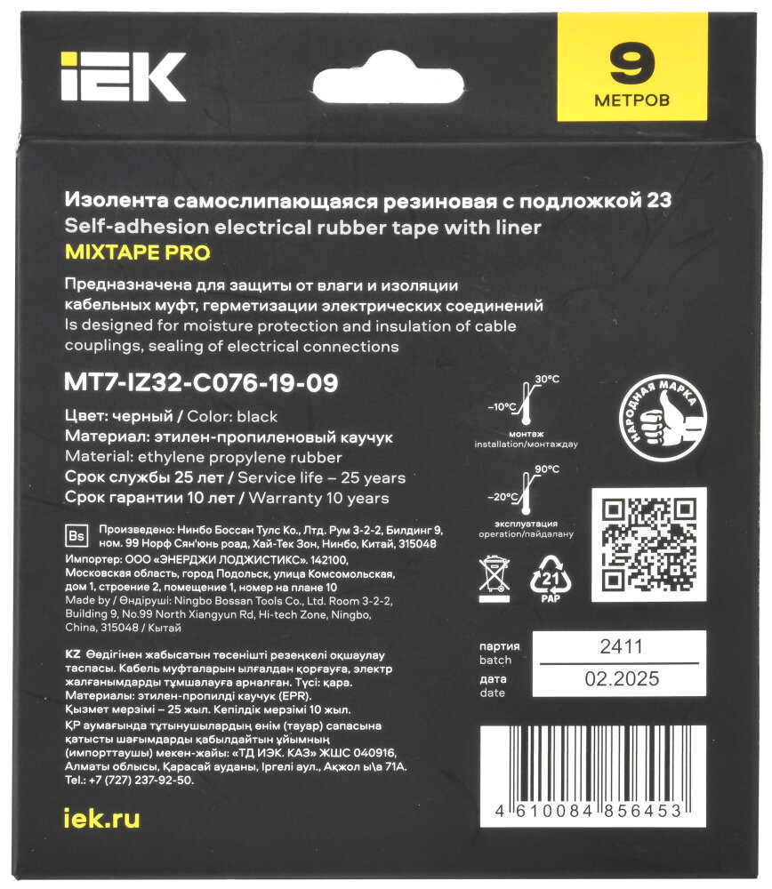 Полное описание товара MIXTAPE PRO Изолента самослипающаяся резиновая с подложкой 0,76х19мм 9м 23 IEK (IEK) MT7-IZ32-C076-19-09