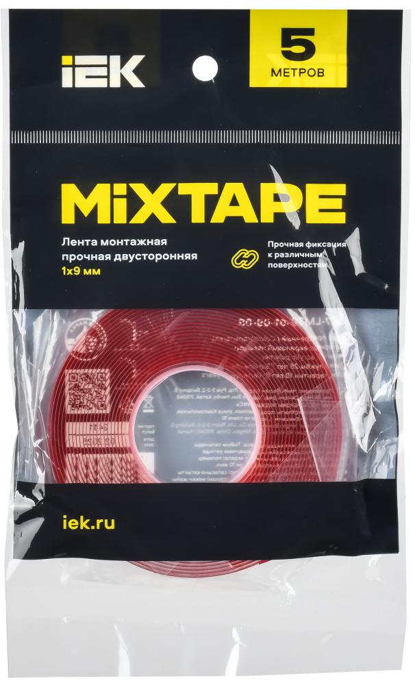 Полное описание товара MIXTAPE PRO Лента монтажная прочная двусторонняя 1х9мм 5м IEK (IEK) MT7-LM30-01-09-05