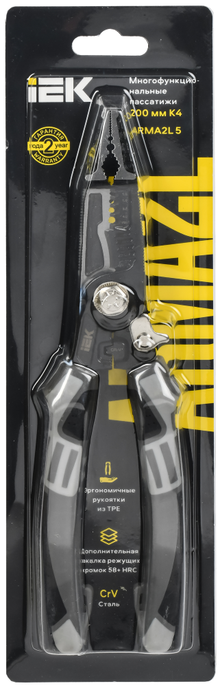 Полное описание товара Многофункциональные пассатижи 200мм K4 ARMA2L 6 (IEK) A2L5-PL11-K4-200