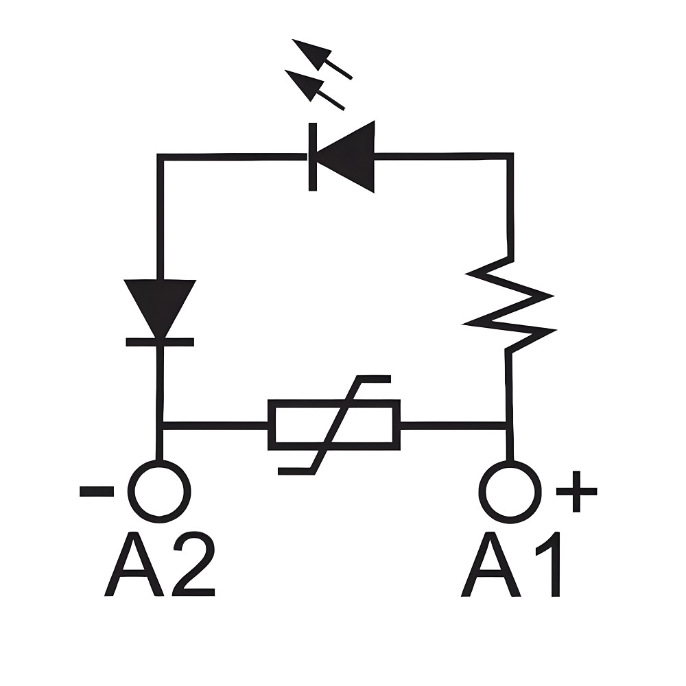 Модуль индикации и защиты с зеленым LED оснащен встроенным защитным диодом (A1+), что обеспечивает надежную работу в цепях постоянного тока с напряжением 120 В. Объединяет функции визуальной сигнализации состояния системы и защиты.
