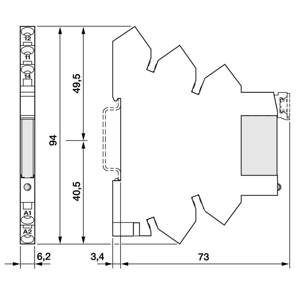 Интерфейсный модуль реле, 1 перекидной контакт 6А 230В AC/DC пружинные зажимы, предназначены для гальванической развязки и передачи команд управления.