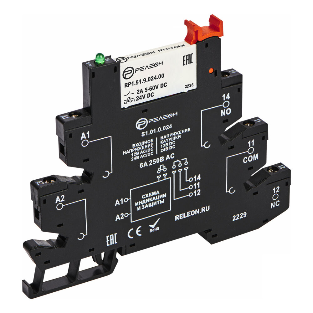 Модуль интерфейсный реле, 1 перекидной контакт 6А, 24В AC/DC, винтовые зажимы (Релеон) RM151002400