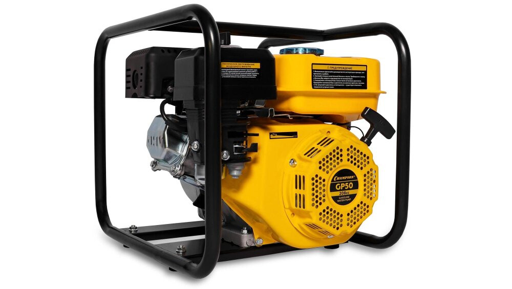 Мотопомпа CHAMPION GP50 оснащена двигателем объемом 208 см3, производительность которого 600 литров в минуту. Мотопомпа оборудована обратным клапаном, который предотвращает всасывание воды из корпуса насоса. Это способствует достаточному количеству воды в корпусе насоса для следующего запуска помпы.