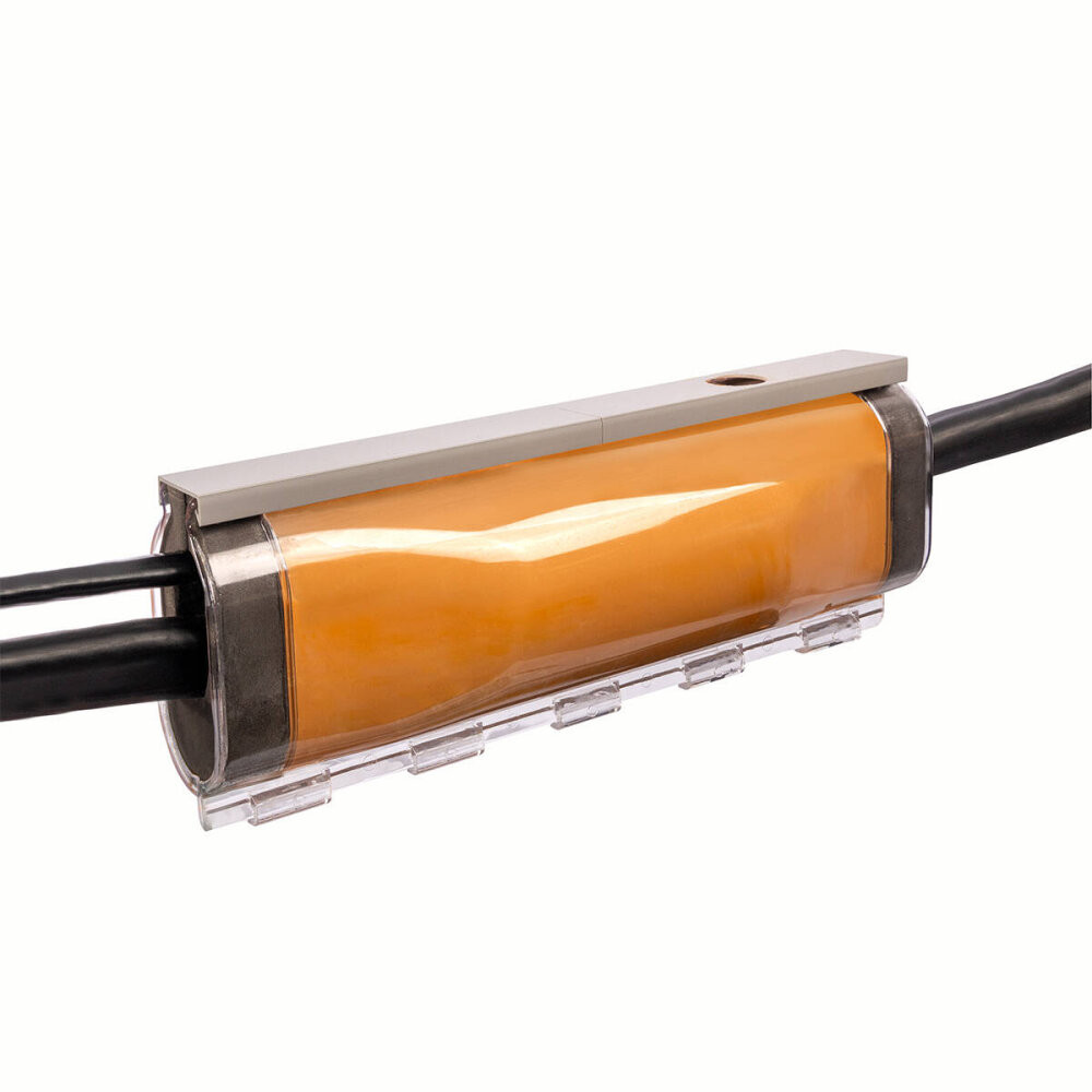 - Прозрачный корпус муфты обеспечивает визуальный контроль за равномерным заполнением всех междужильных пустот