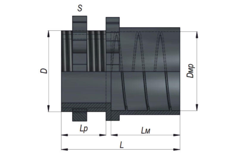 Муфта вводная пластиковая, не поддерживающая горения, предназначена для ввода металлорукава в распределительные шкафы. Имеют внутреннею резьбу, соответствующую шагу навивки металлорукава данного диаметра.