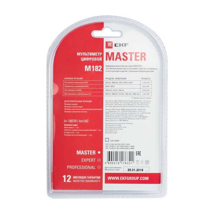 Мультиметр цифровой M182 Master (EKF) In-180701-bm182
