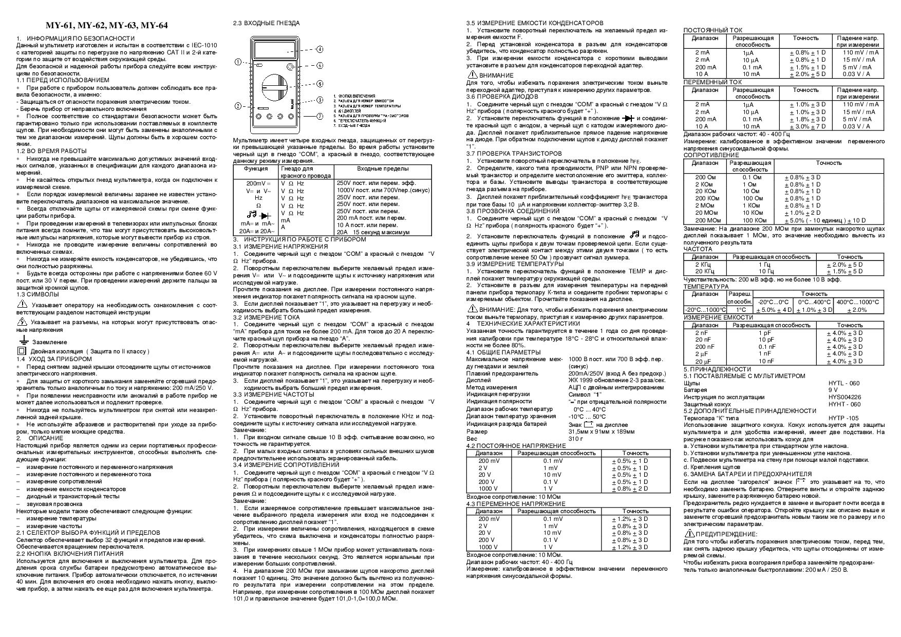 Полное описание товара Мультиметр MY64 (MASTECH) MMC115
