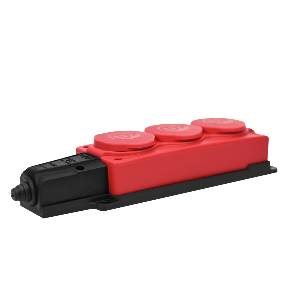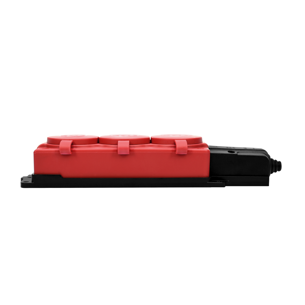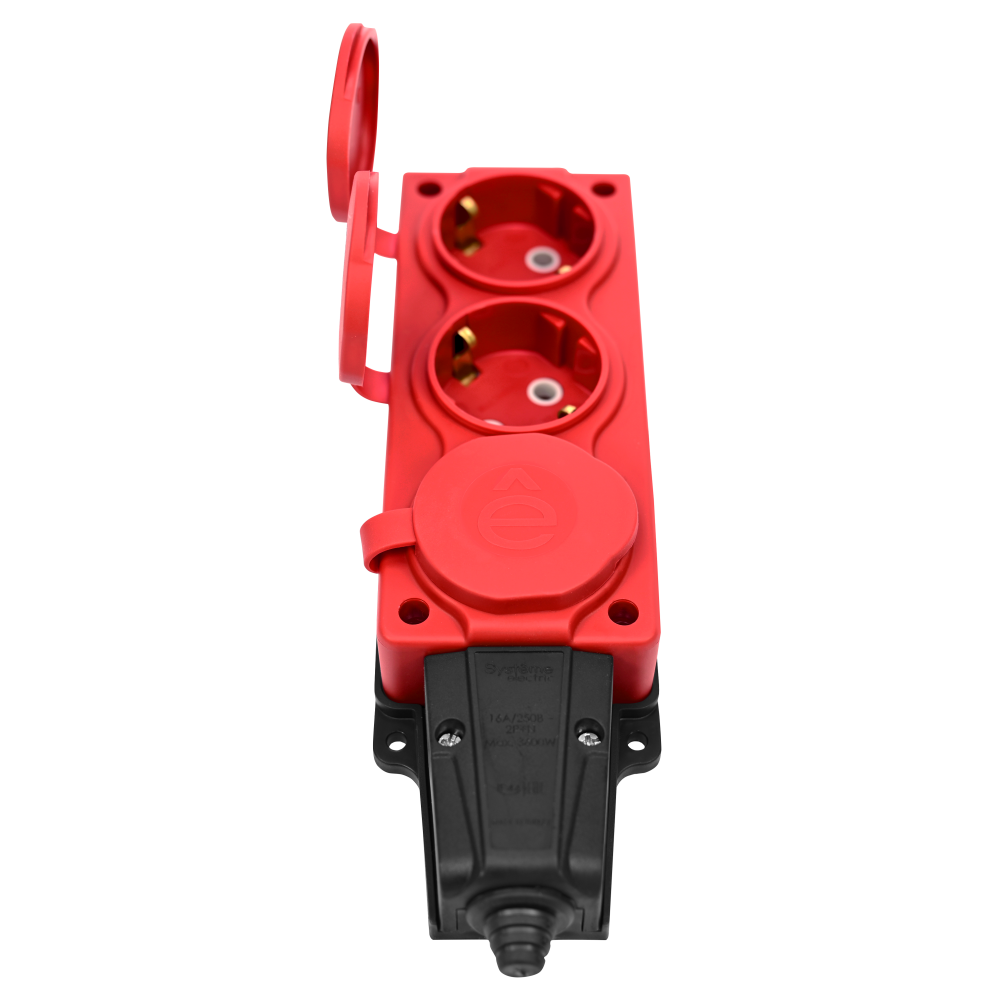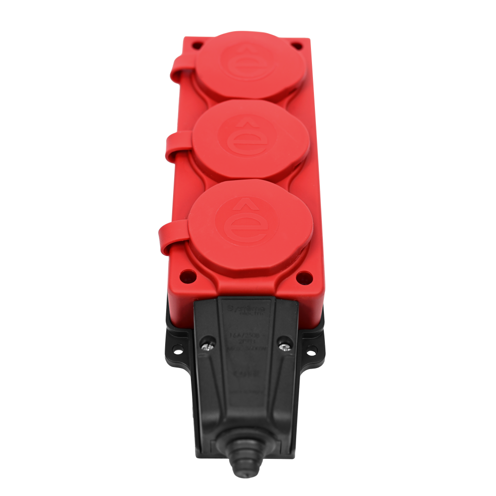 MultiSet Колодка 3х розетка 2К+З каучуковая 16А/250В IP44 Красная (Systeme Electric) MST4123RD