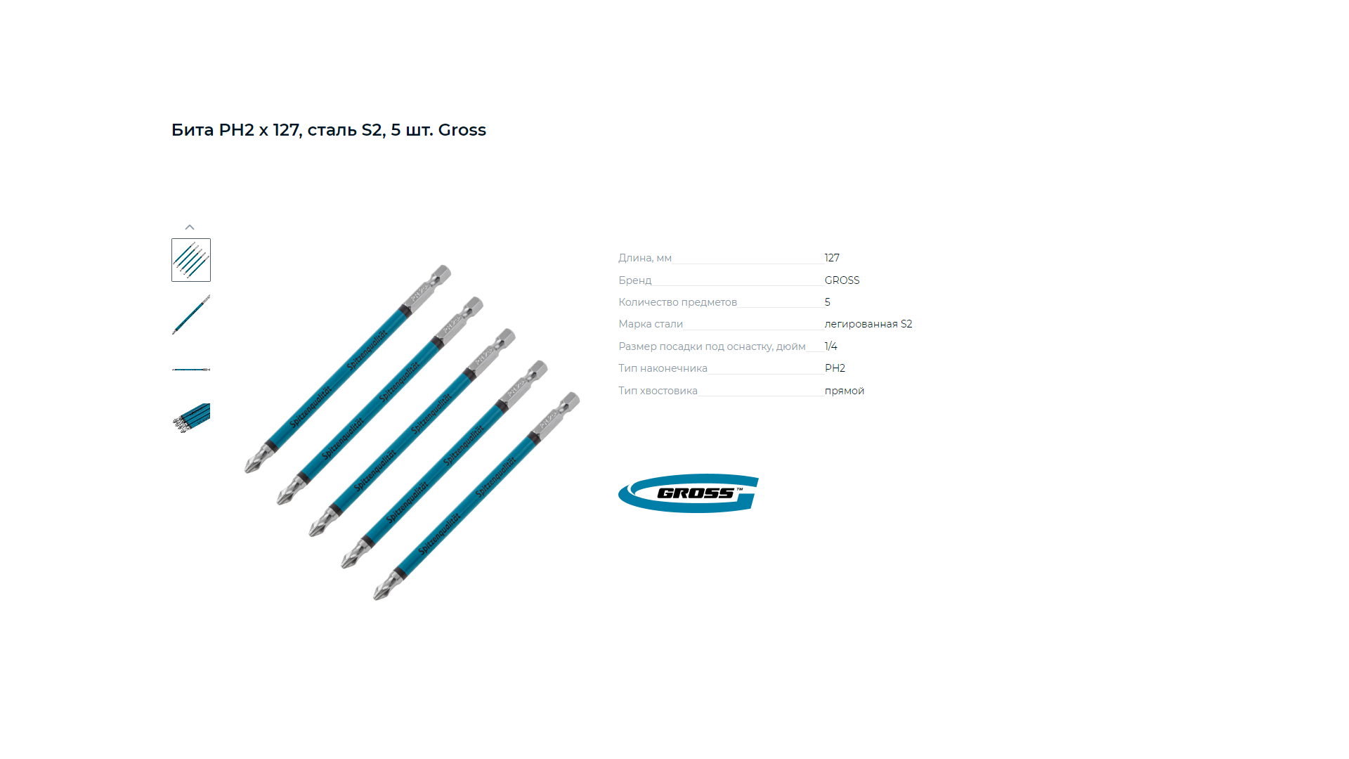 Полное описание товара Набор бит PH2 х150, сталь S2, 5шт. (GROSS) 11203