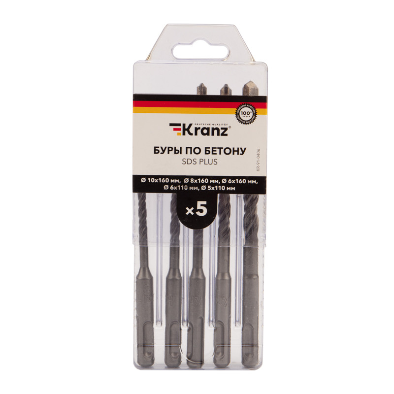Набор буров по бетону 5-6х110х50мм, 6-8-10х160х100 мм, SDS-plus (Kranz) KR-91-0406