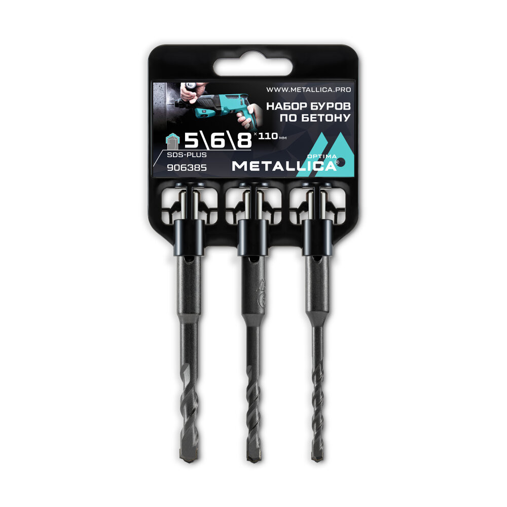 Набор буров по бетону SDS-plus 5, 6, 8 х 110/50 мм, 3 шт на клипсе (METALLICA) 906385