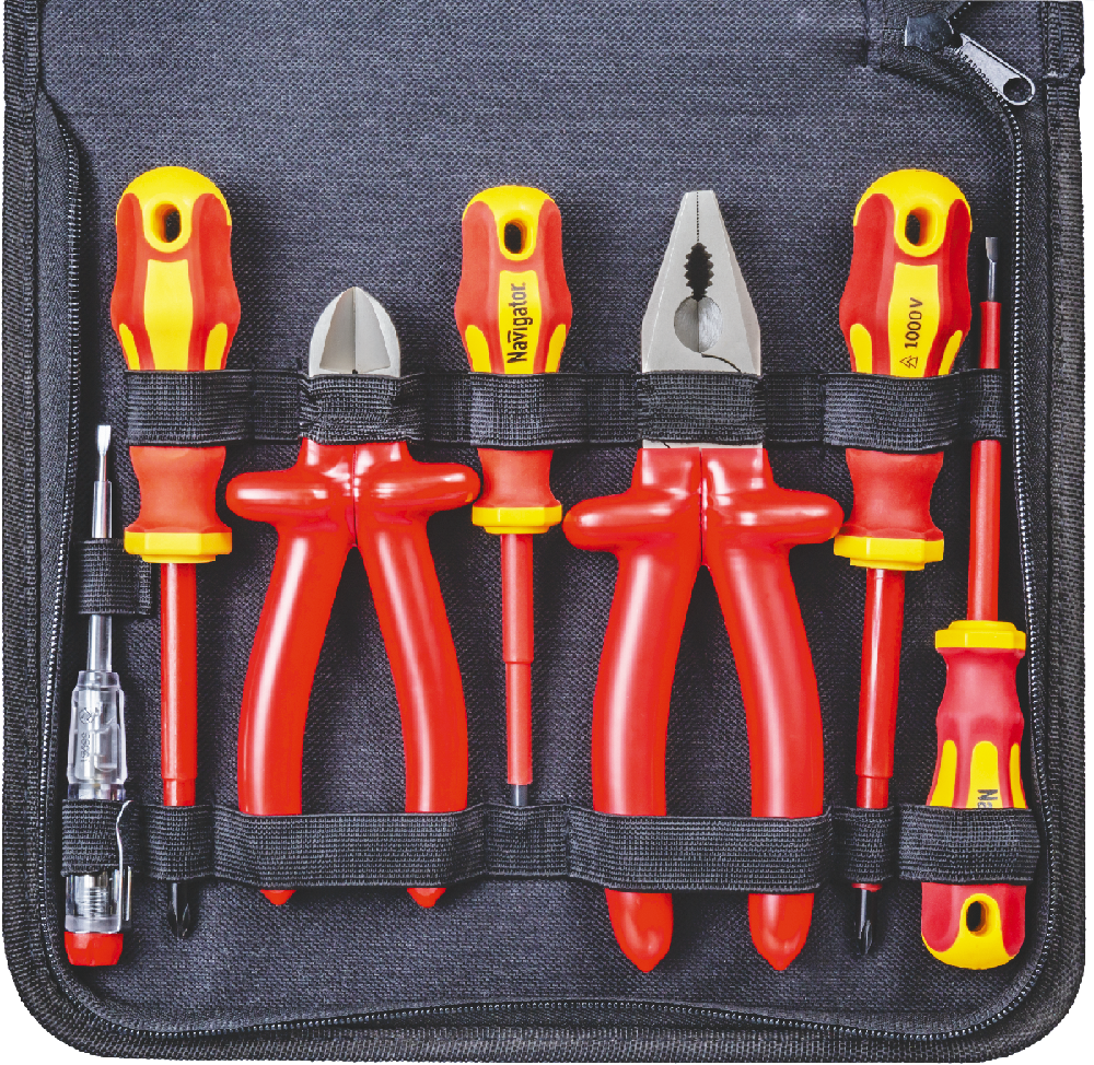 Диэлектрический инструмент Navigator предназначен для проведения широкого спектра профессиональных электротехнических и электромонтажных работ в установках с напряжением до 1000 В. Все рабочие части инструмента подвергнуты дополнительной многоступенчатой закалке, что значительно продлевает их ресурс. Многокомпонентные рукоятки с упорами обеспечивают крепкий хват, предотвращая проскальзывание руки. Прочный тканевый кофр позволяет удобно хранить и перемещать инструмент.