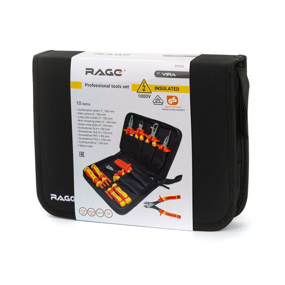 Набор электромонтажного диэлектрического инструмента 1000 В VDE 10 шт (Rage) 397033