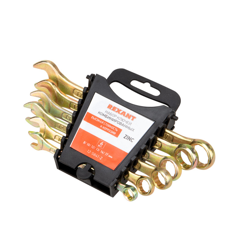 Полное описание товара Набор ключей комбинированных (8, 10, 12, 13, 14, 17 мм), желтый цинк (REXANT) 12-5841-2