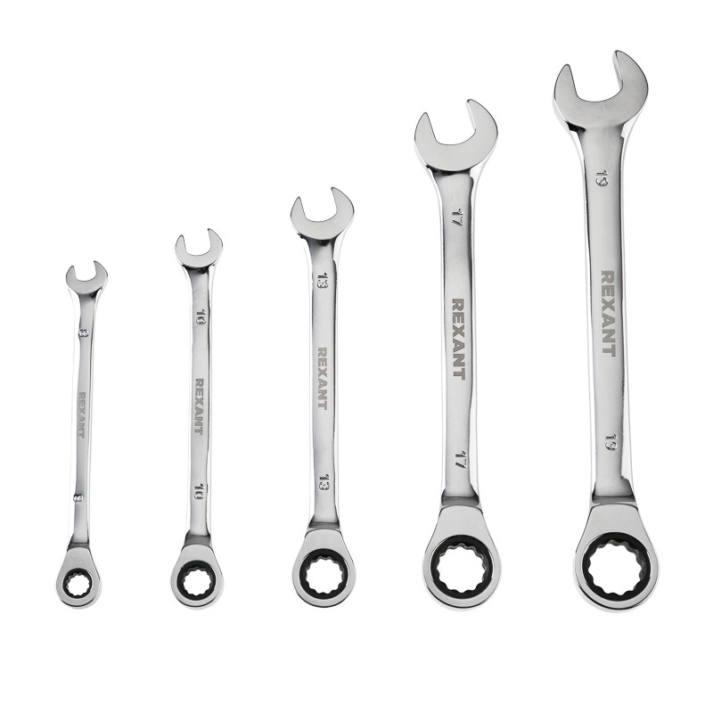 Полное описание товара Набор ключей комбинированных трещоточных (8, 10, 13, 17, 19 мм), CrV (REXANT) 12-4841-1