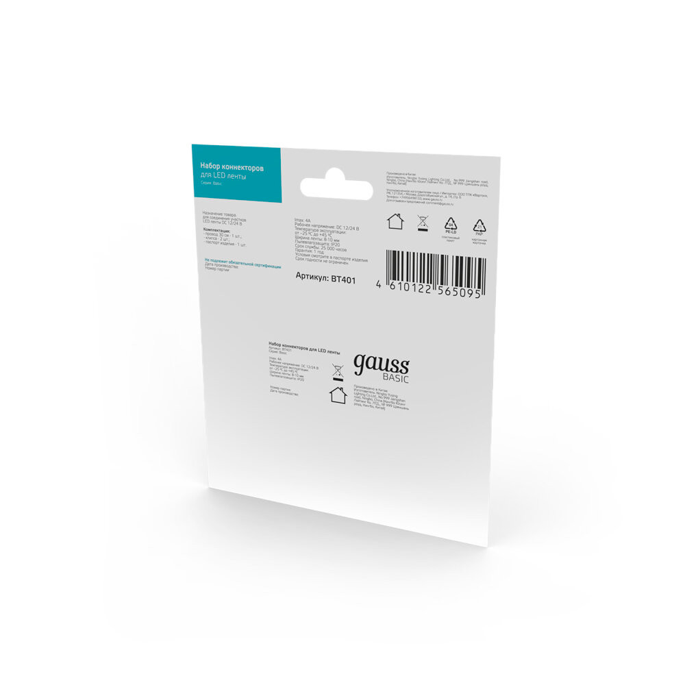 Полное описание товара Набор коннектров для светодиодной ленты 8-10мм провод 30мм Basic (GAUSS) BT401