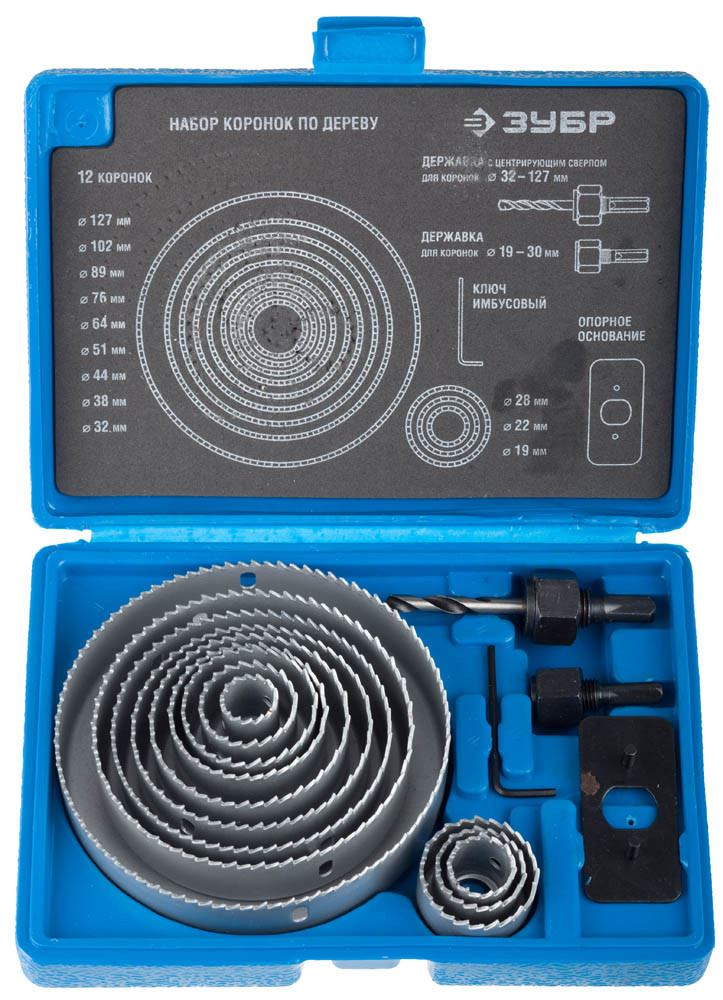 Набор коронок по дереву 19-127мм 12 шт (ЗУБР) 29554-H15_z01