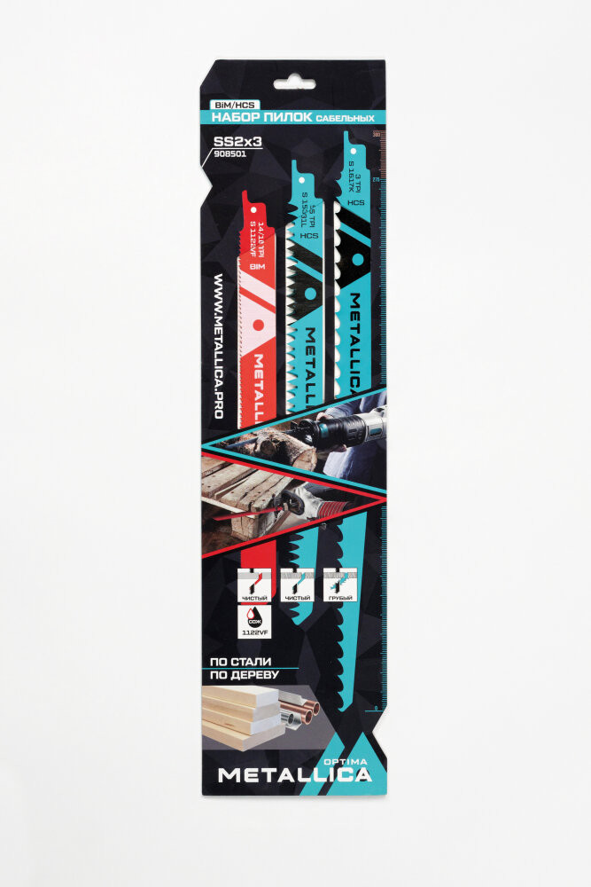 Полное описание товара Набор пилок сабельных №2, S1531L/S1617K/S1122VF, 225-300мм, дер/мет, в карт., 3шт (METALLICA) 908501
