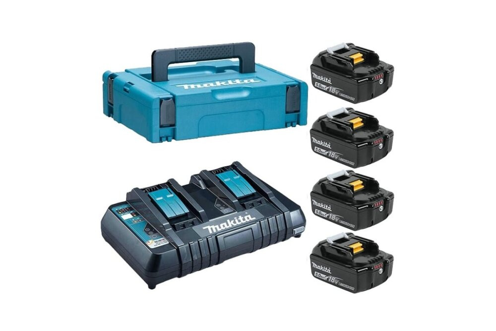 Набора Makita 198312-4 состоит из 4-х аккумуляторов Makita BL1850B и зарядного устройства DC18RD. Предназначен для использования с аккумуляторными инструментами Makita напряжением 18 В.