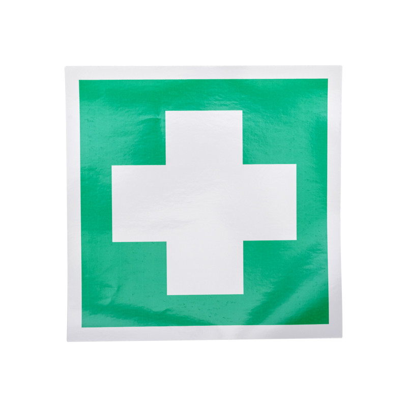 Наклейка 'Аптечка первой медицинской помощи' - основной знак медицинского и санитарного назначения, обозначает место расположения аптечки. Такие наклейки предназначены для своевременного информирования окружающих о местонахождении медицинского оборудования. Они обязательны к размещению на предприятиях, в учреждениях, общественных зданиях и сооружениях. Знак хорошо виден и сохраняет яркость цветов долгое время даже при постоянном использовании. Имеет хорошую устойчивость к смазыванию, стойкость к прямым солнечным лучам, перепадам температуры, мелким механическим воздействиям. Выполнен из прочного, износостойкого материала, легко клеится и крепко держится и не оставляет следов после снятия (предназначен для на несения на ровную сухую поверхность).