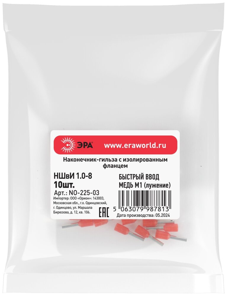 Наконечник-гильза с изолированным фланцем (упаковка 10 шт.) NO-225-03 НШвИ 1,0-8 (ЭРА) Б0063350
