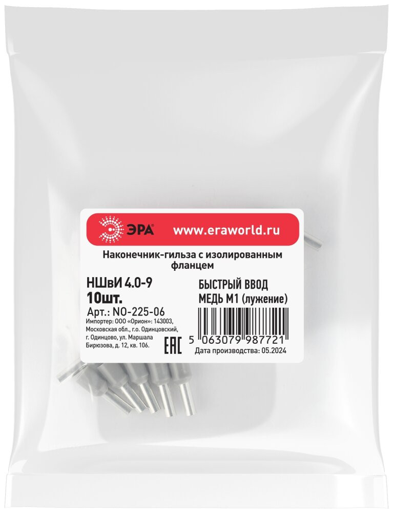 Наконечник-гильза с изолированным фланцем (упаковка 10 шт.) NO-225-06 НШвИ 4,0-9 (ЭРА) Б0063353