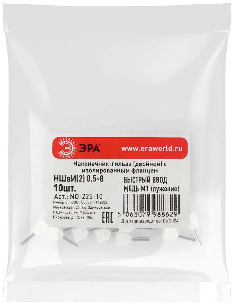 Полное описание товара Наконечник-гильза с изолированным фланцем (упаковка 10 шт.) NO-225-10 (двойной) НШвИ(2) 0,5-8 (ЭРА) Б0063277