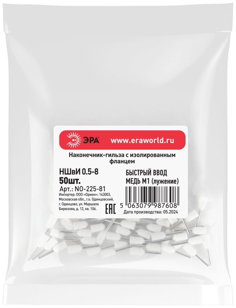Наконечник-гильза с изолированным фланцем (упаковка 50 шт.) NO-225-81 НШвИ 0,5-8 (ЭРА) Б0063367