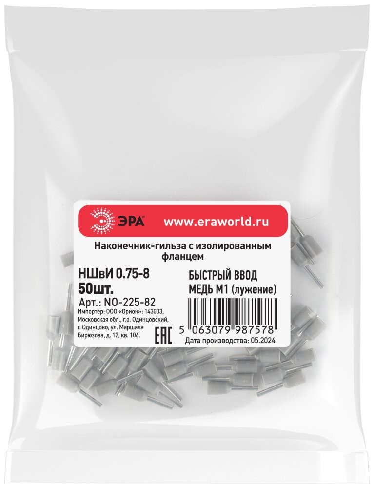 Полное описание товара Наконечник-гильза с изолированным фланцем (упаковка 50 шт.) NO-225-82 НШвИ 0,75-8 (ЭРА) Б0063372